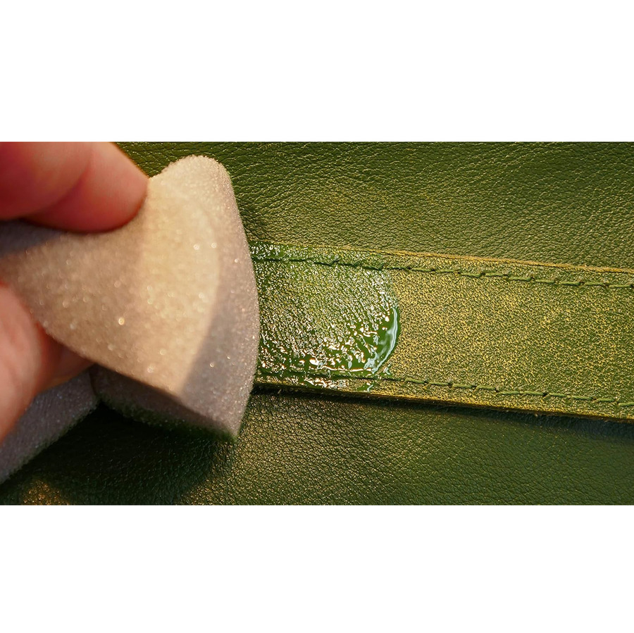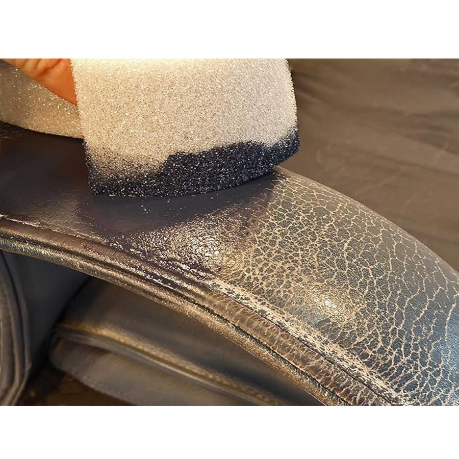 Продукт подходит для всех типов гладкой кожи и замши (в данном случае, для гладкой кожи). Он является отличной альтернативой полной перекраске, особенно когда необходимо локальное восстановление.