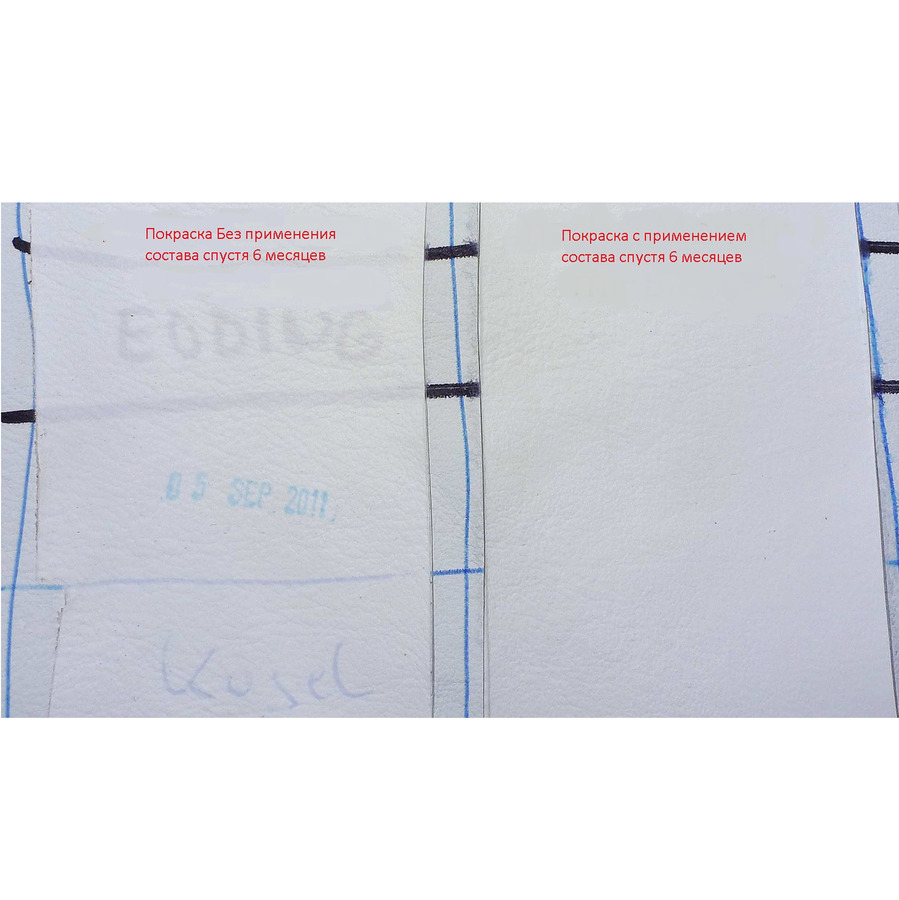 Дозировка отвердителя: 1% — мягкая мебельная кожа, 2% — прочная автомобильная, 3% — твердые поверхности/искусственная кожа.