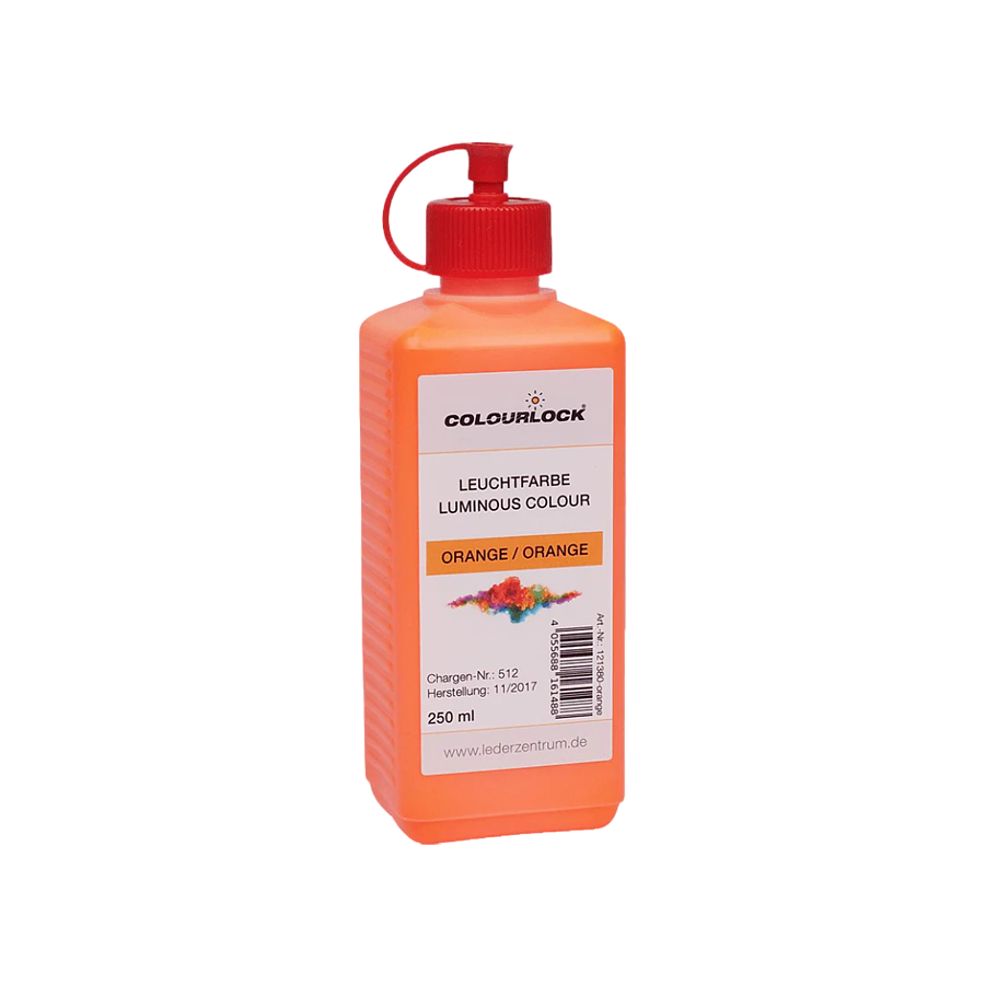 Светящаяся краска COLOURLOCK, оранжевая, 250 мл, для перекрашивания или повторной покраски пигментированной гладкой кожи, а также для перекрашивания или повторной покраски искусственной кожи и пластика.
