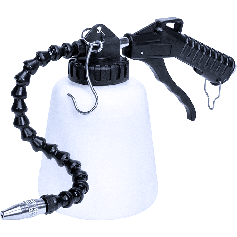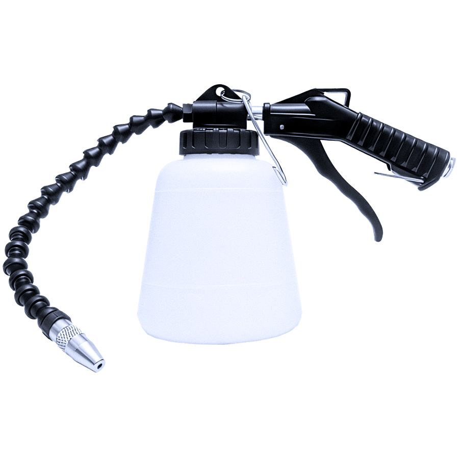 Профессиональный пневмоинструмент для глубокой очистки и обезжиривания в труднодоступных местах. Гибкая сегментированная насадка длиной 320 мм легко проникает в скрытые полости кузова, воздуховоды вентиляции, подкапотное пространство, дверные карты, пороги, ниши и другие зоны, куда не достанет обычный пистолет или щётка. Благодаря эжекторному принципу (Venturi) засасывает и эффективно распыляет чистящие / обезжиривающие средства, пену, антикор или другие жидкости прямо из бачка.