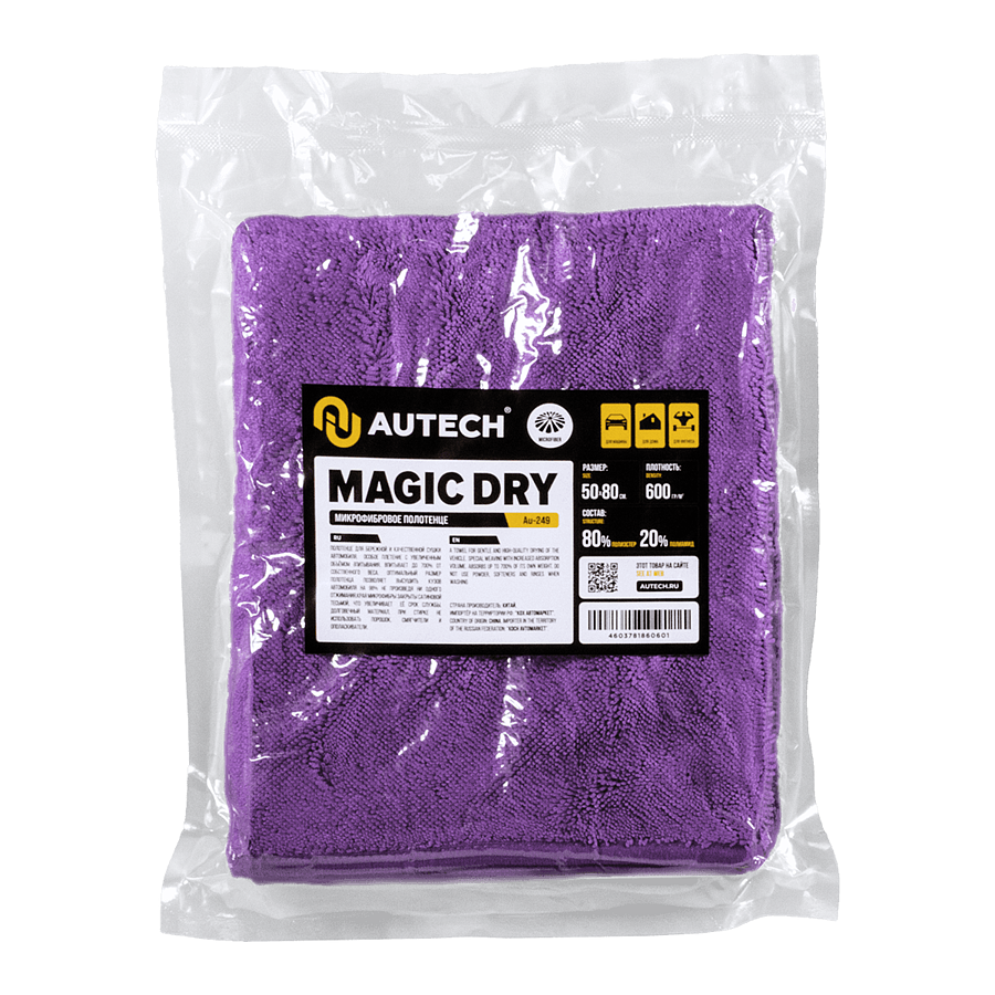 MAGIC DRY Микрофибровое полотенце 50*80 см, ПУРПУРНОЕ, 600гр/м2 для сушки авто Au-249