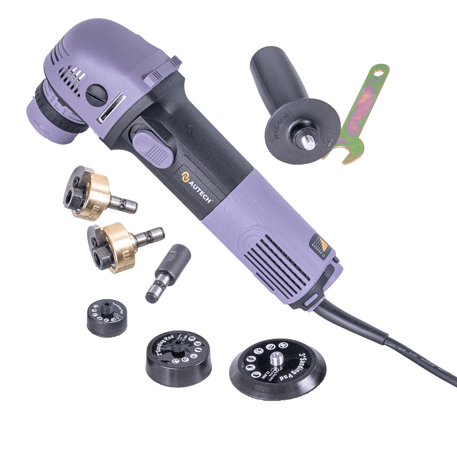 - Система 3-в-1: быстрая смена типа привода от деликатного эксцентрика (орбита 8 или 12 мм) до ротора для агрессивного локального выпиливания дефектов лака.