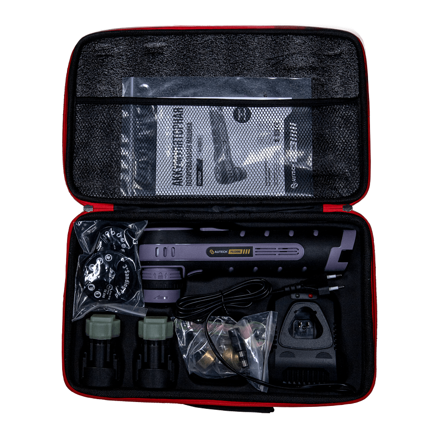 - Свобода движений: легкий вес (всего 886 граммов) и два аккумулятора в комплекте позволяют комфортно работать в салоне автомобиля или выводить сложные элементы кузова без мешающихся проводов.