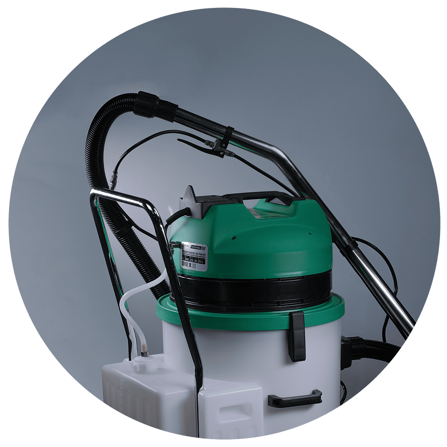 Моющий пылесос экстрактор для влажной уборки и химчистки тканевых поверхностей с пластиковым баком.