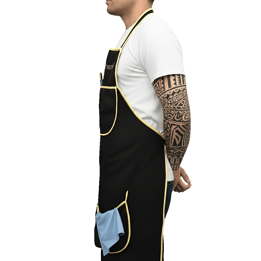 - Регулируемая лента на шее: Позволяет удобно настроить фартук под любой рост.