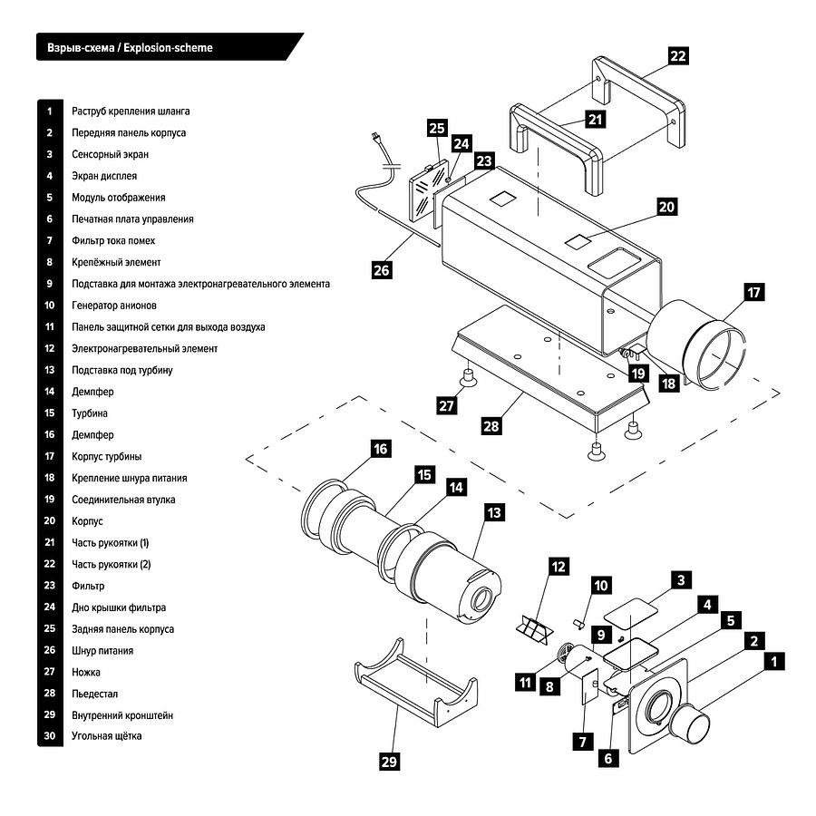 В комплект к турбосушке входят 3 сменные насадки на шланг.