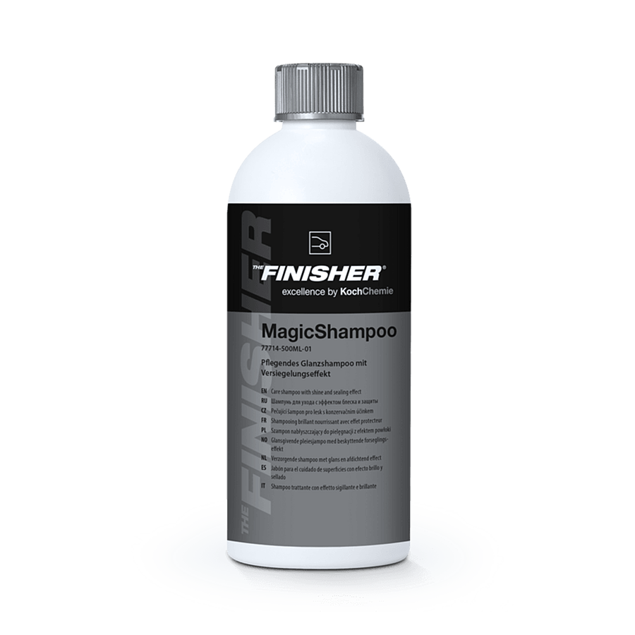 MagicShampoo THE FINISHER — это не просто шампунь, а уходовое средство «два в одном» от немецкого бренда Koch-Chemie. Он предназначен для автовладельцев, которые хотят не только вымыть автомобиль, но и придать покрытию насыщенный блеск и защиту без лишних усилий. Специальная формула с наноконсервантом создает на ЛКП тонкий гидрофобный (водоотталкивающий) слой, который облегчает последующие мойки и продлевает жизнь уже нанесенных покрытий (восков, силантов или керамики)