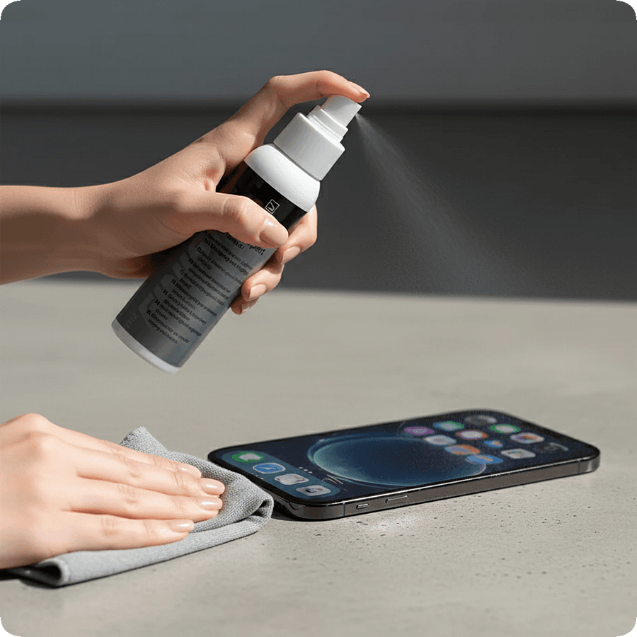 Чистота без разводов: Специально разработанная формула мгновенно удаляет отпечатки пальцев, пыль и жирные пятна, не оставляя радужных разводов и липкой пленки .